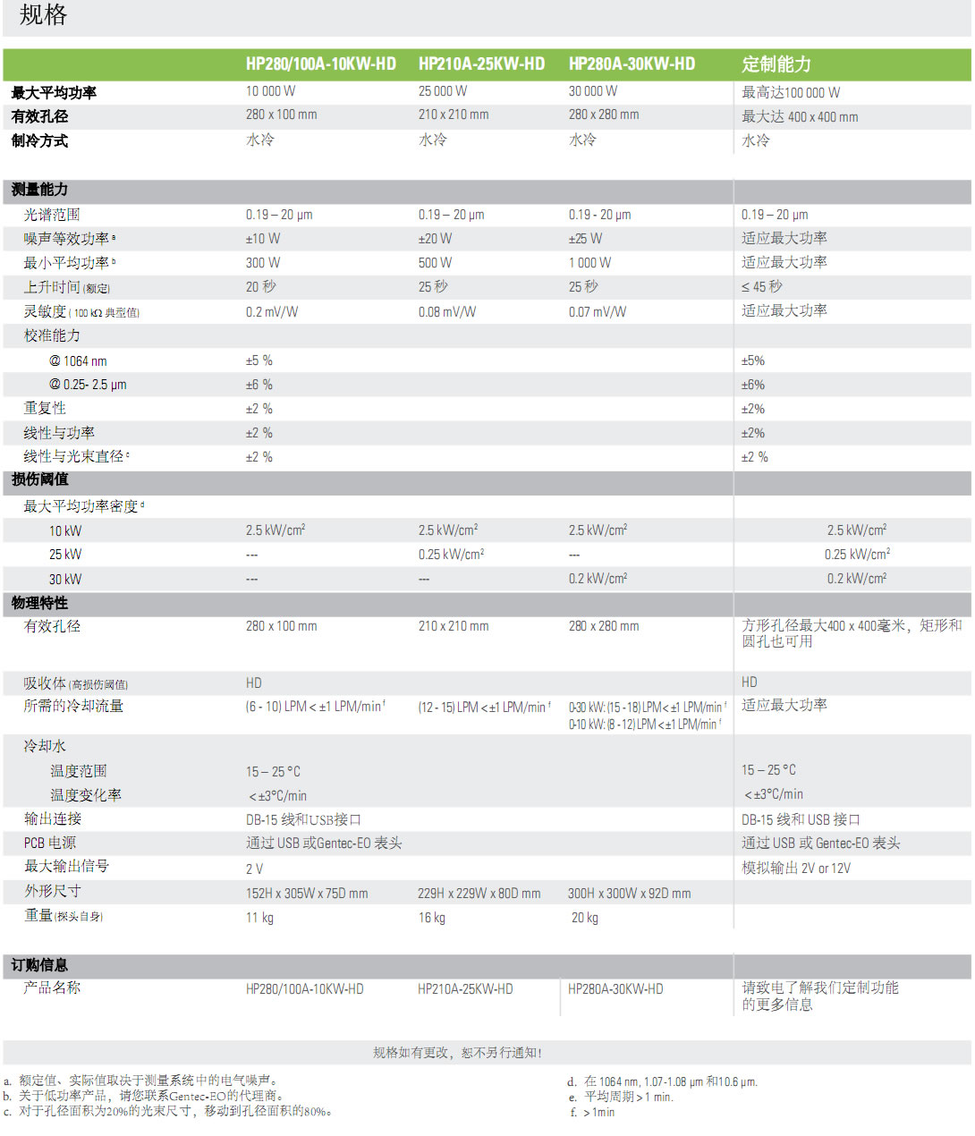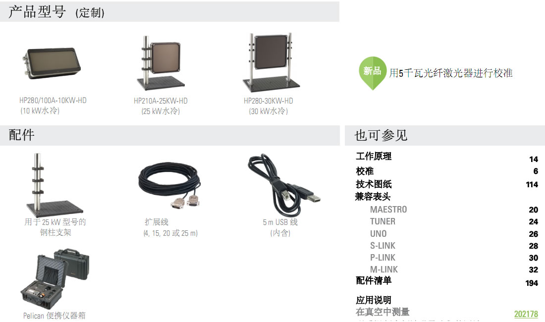 所有HP型号均可在YAG和CO2波长下校准,校准不确定度为±5%。