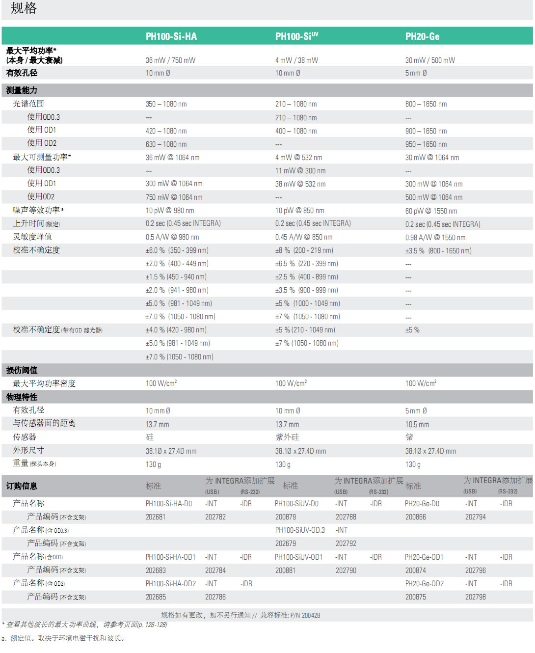 • 硅: 350 - 1080 nm, 最高达 750 mW